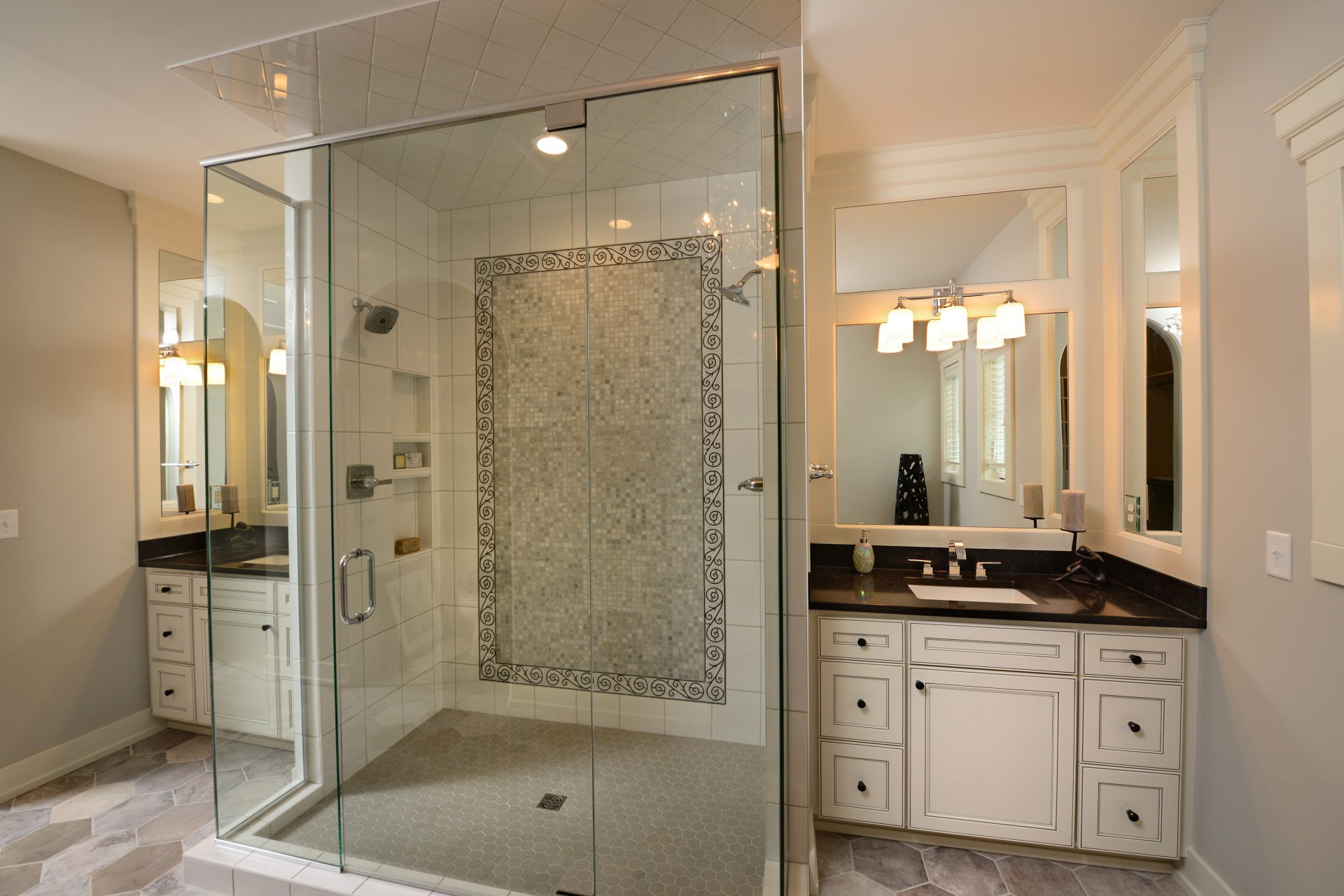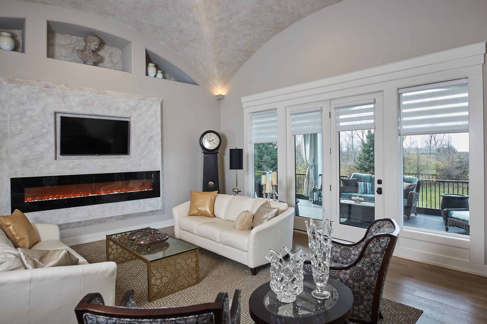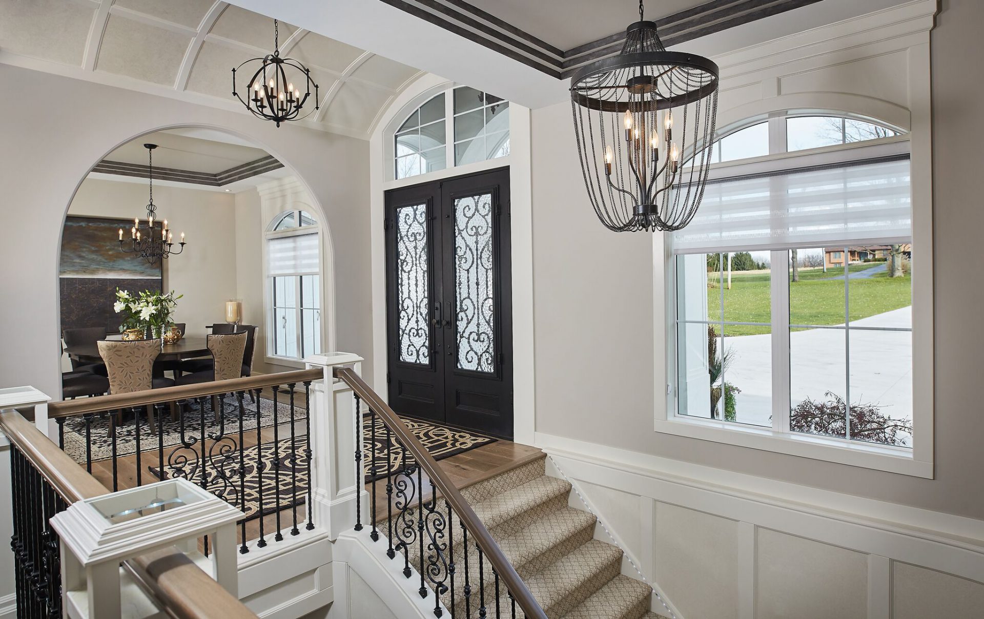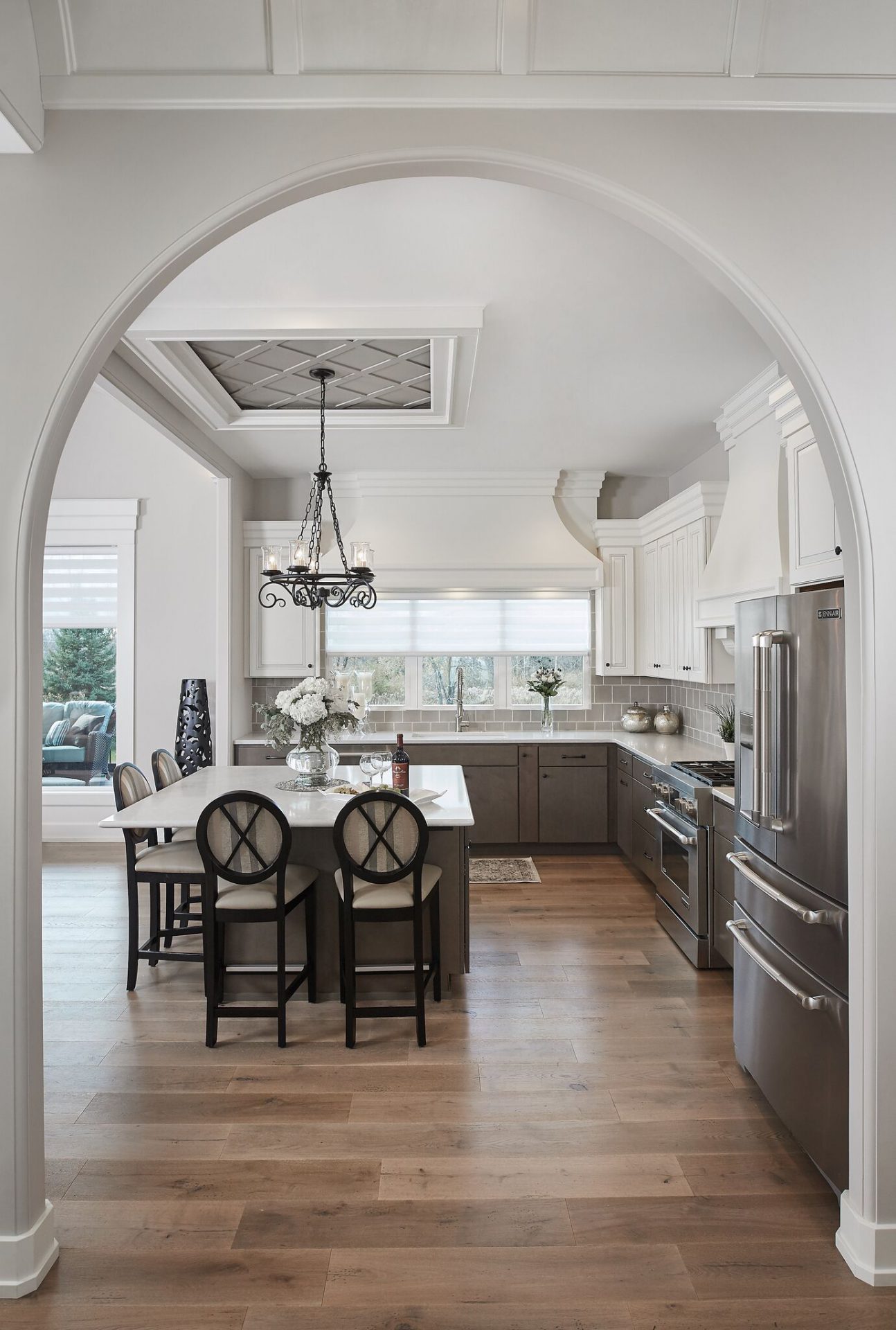 The creativity of the Dave Dusendang Custom Homes team is on full display in this unique custom home. The “Palma” plan blends Mediterranean charm with the more traditional craftsmen style. Custom features are found in every area of the home from the well thought out storage in the laundry area to the grand groin vaulted & barrel ceilings.