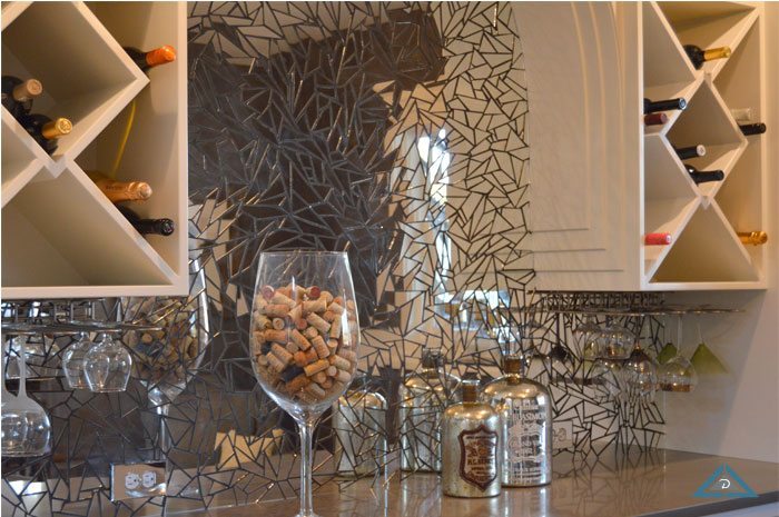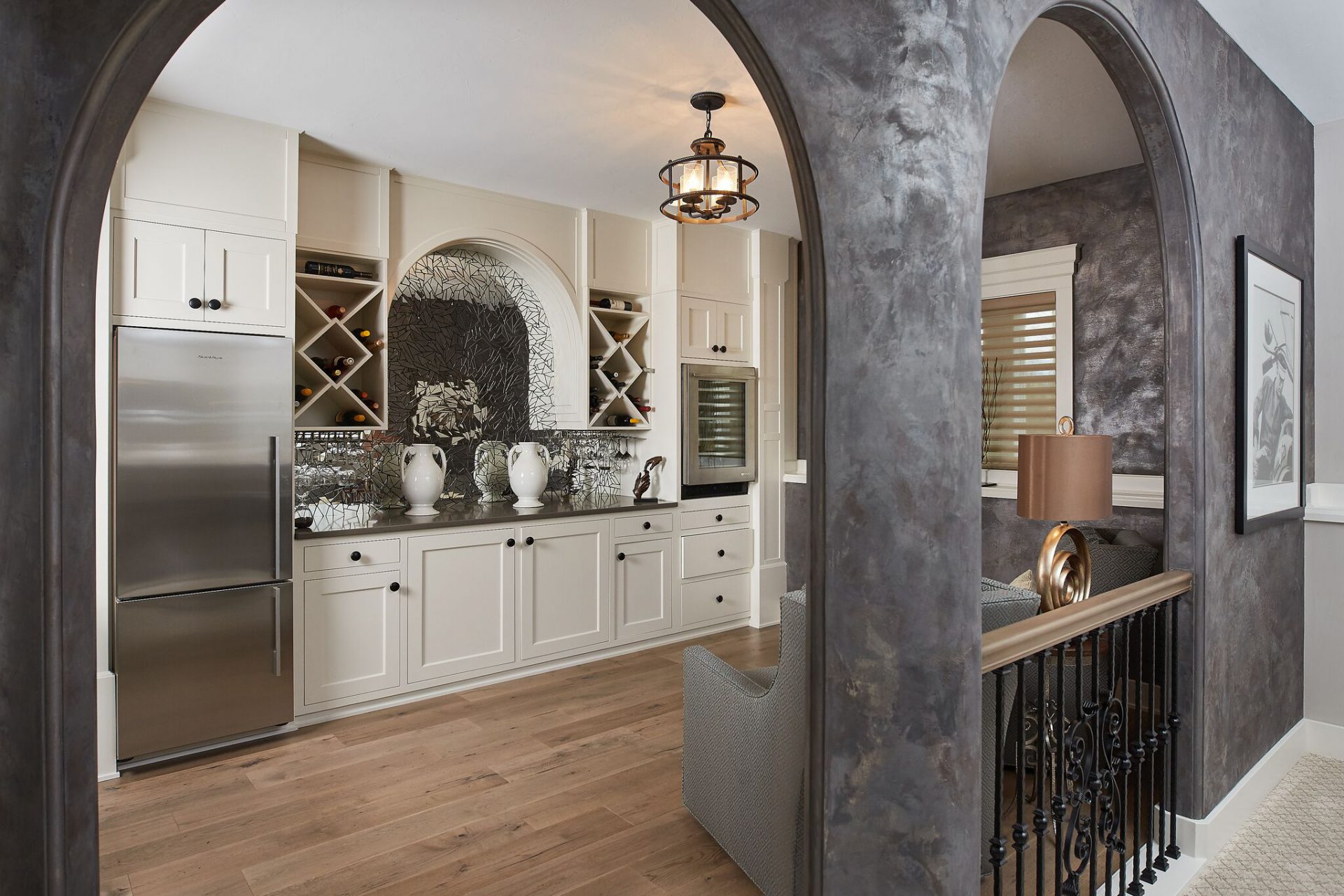 - Inviting full wine bar with custom built cabinets and special venetian plaster treatment